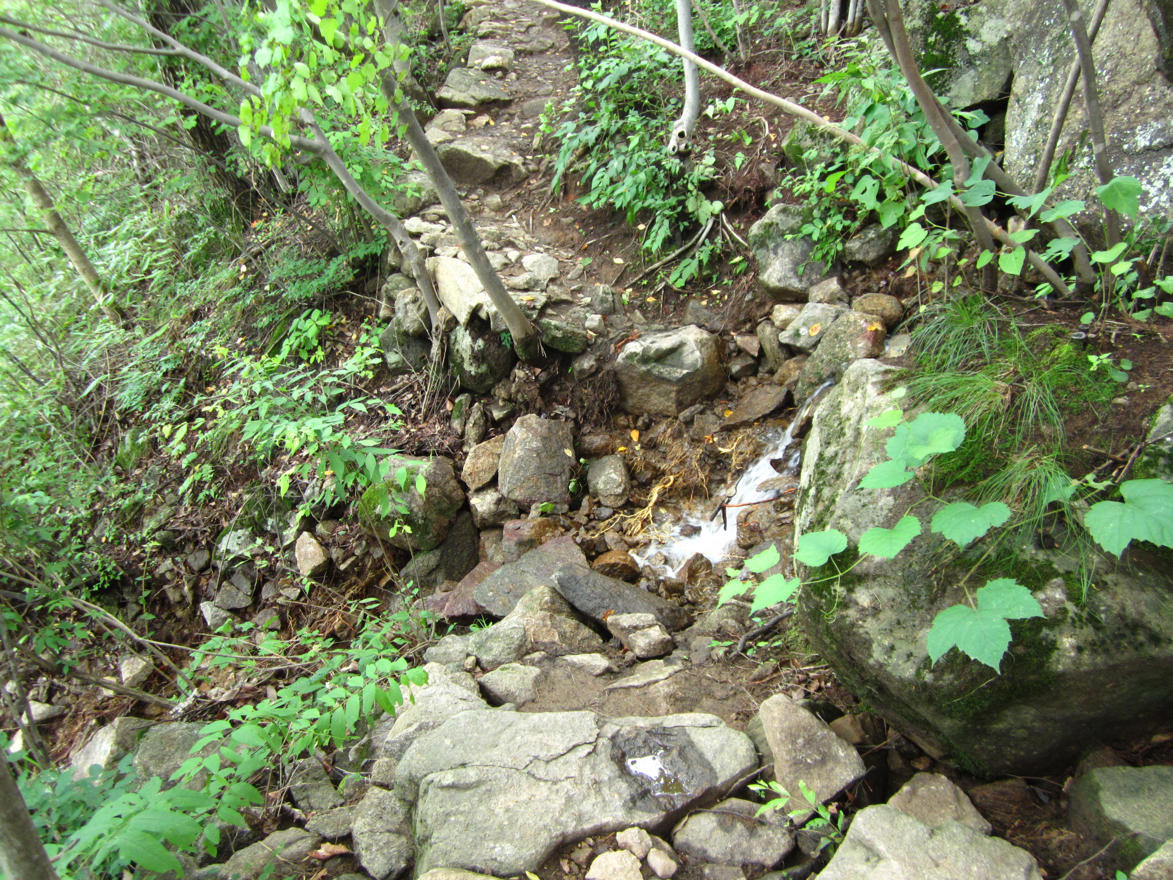 숲길의 훼손은 장마철 생긴 물길로 인해 갑자기 또는 서서히 훼손된다. 등산로의 경우 물길이 잡히는게 용이해서 많은 비가 올 경우 필히 냇물(수로)로 변한다. 이때 흙이 쓸려내려가서 암석만 남는 노면 침식이 일어나고 장기간에 걸쳐 세굴이 진행된다. 배수가 잘 되도록 중간 중간 물길만 잘 잡아주면 등산로의 훼손을 막을 수 있다. 산사태도 이 물길을 제대로 잡아주지 못해 생기는게 대부분이다.