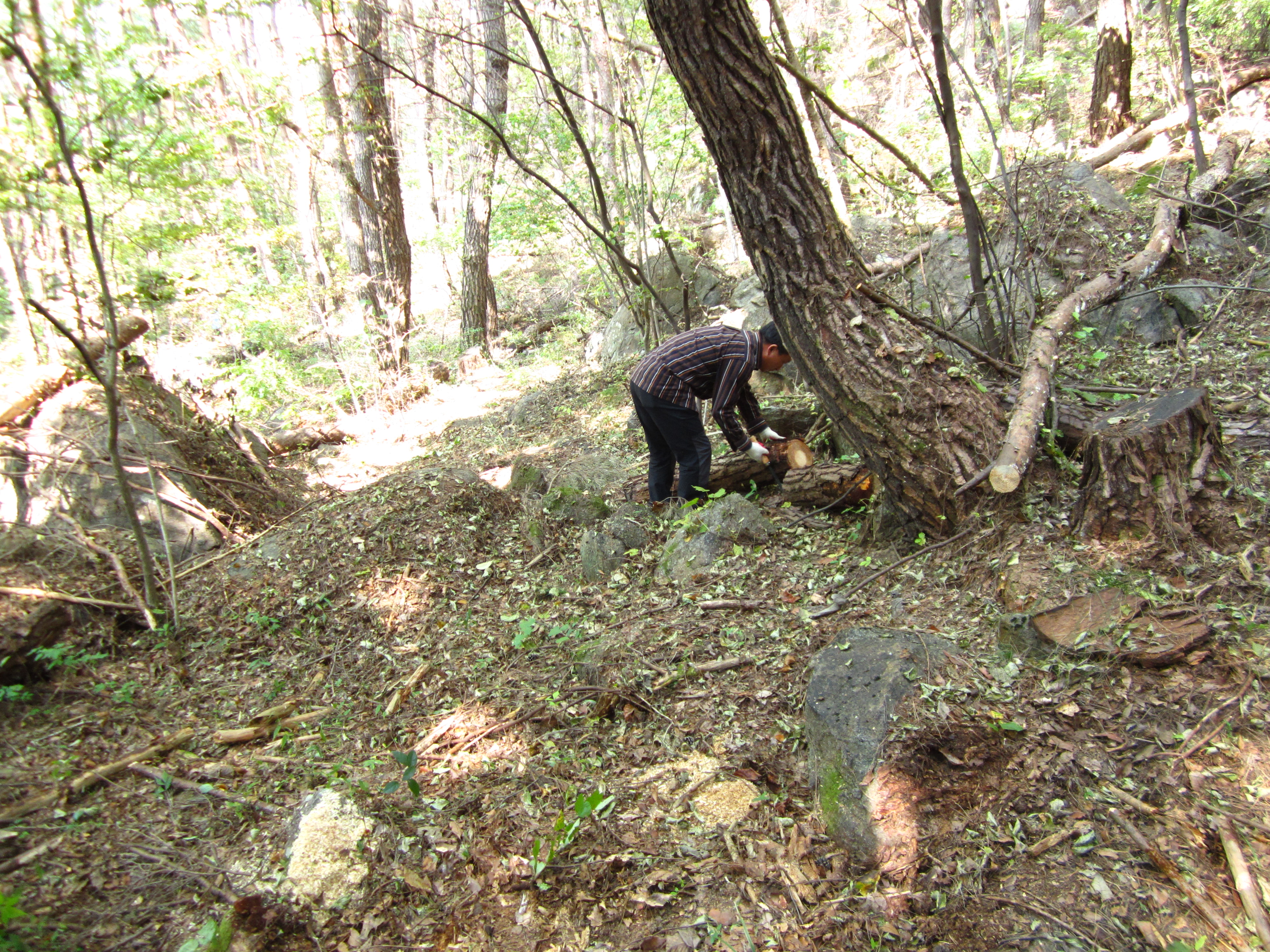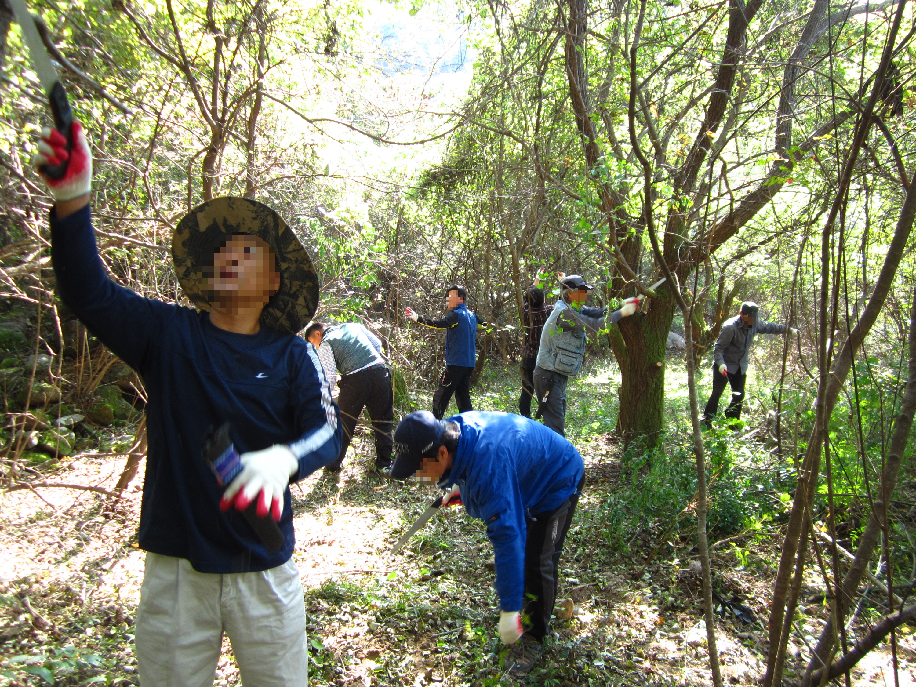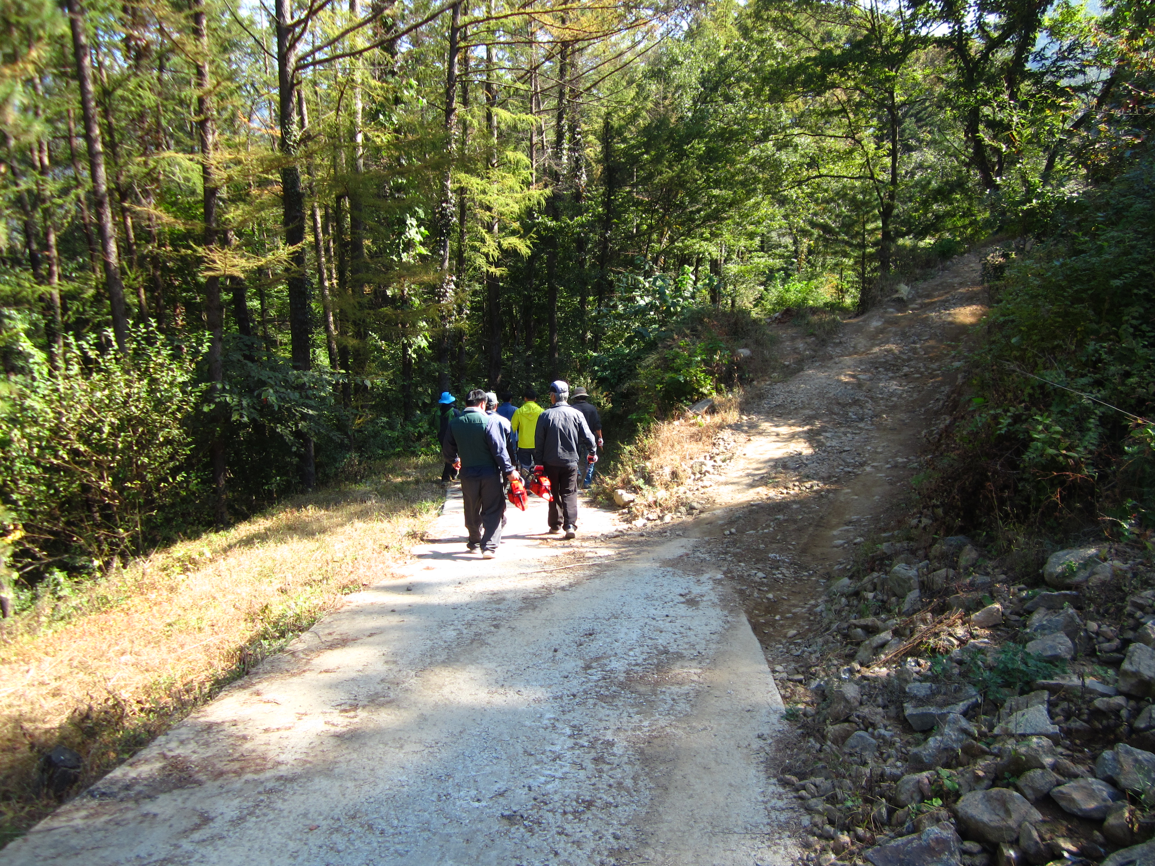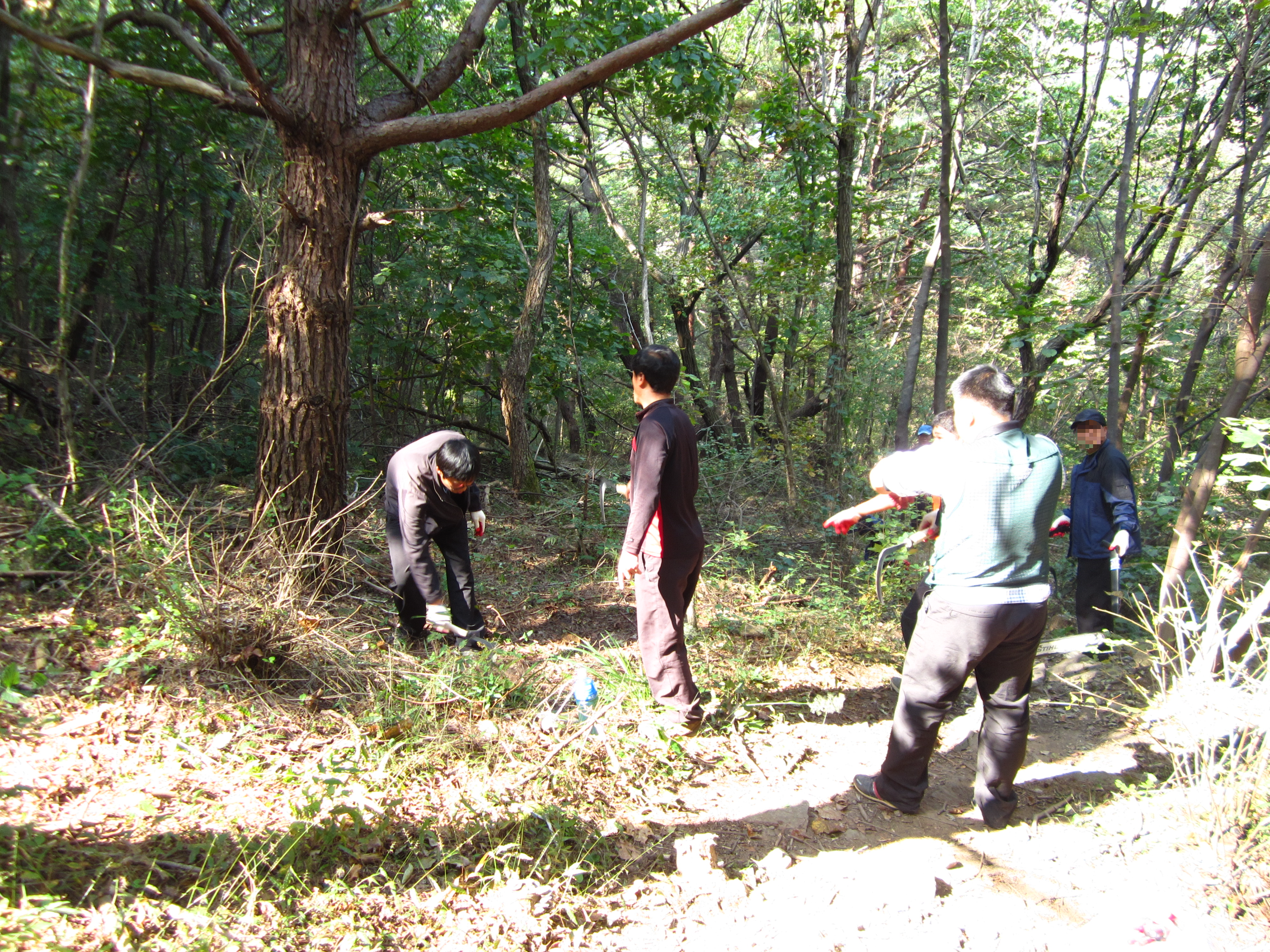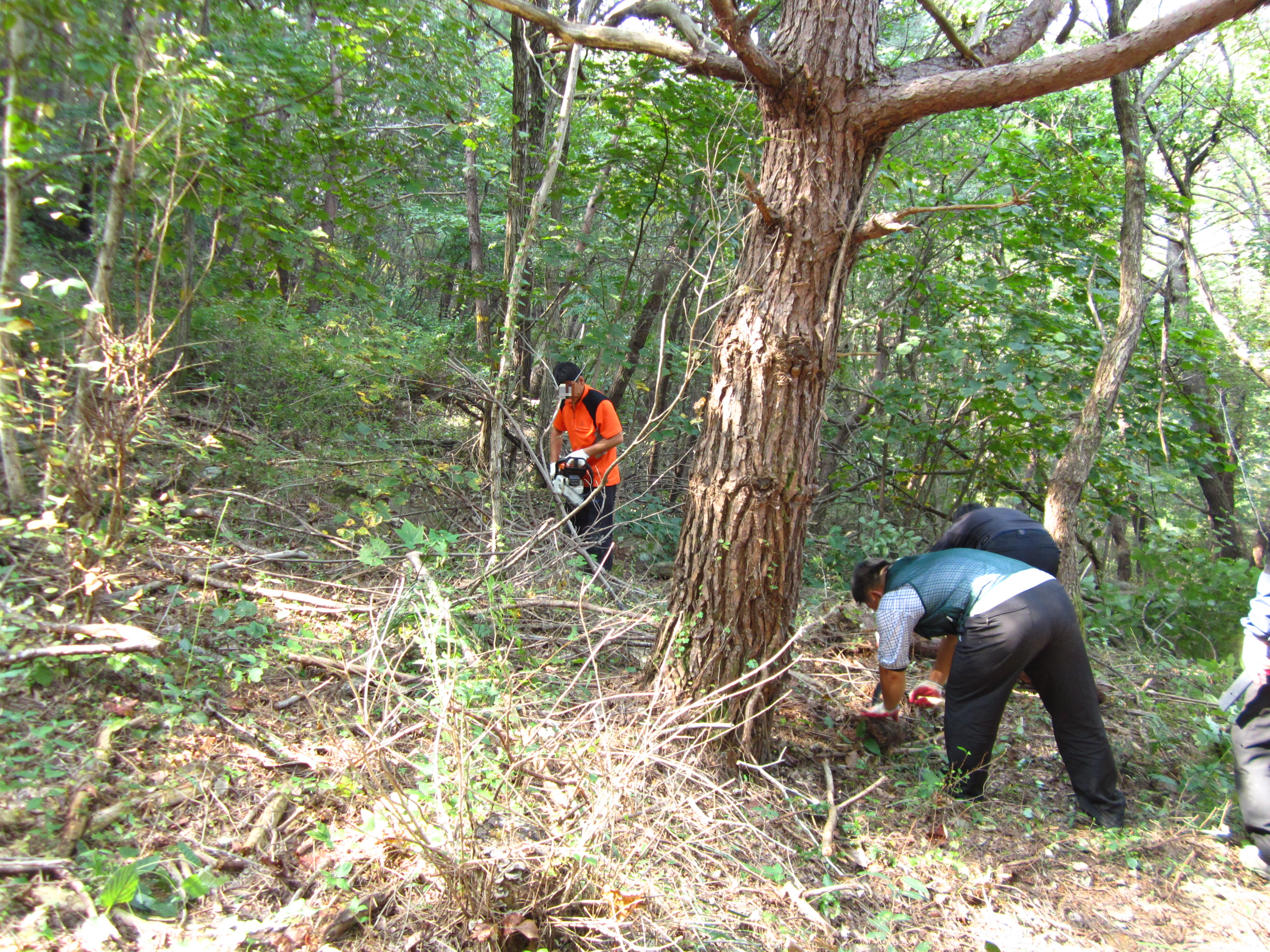 산림 작업하시는 인력을 모시고 왔다. 답사했던 노선대로 작업을 해야 하는 임무.