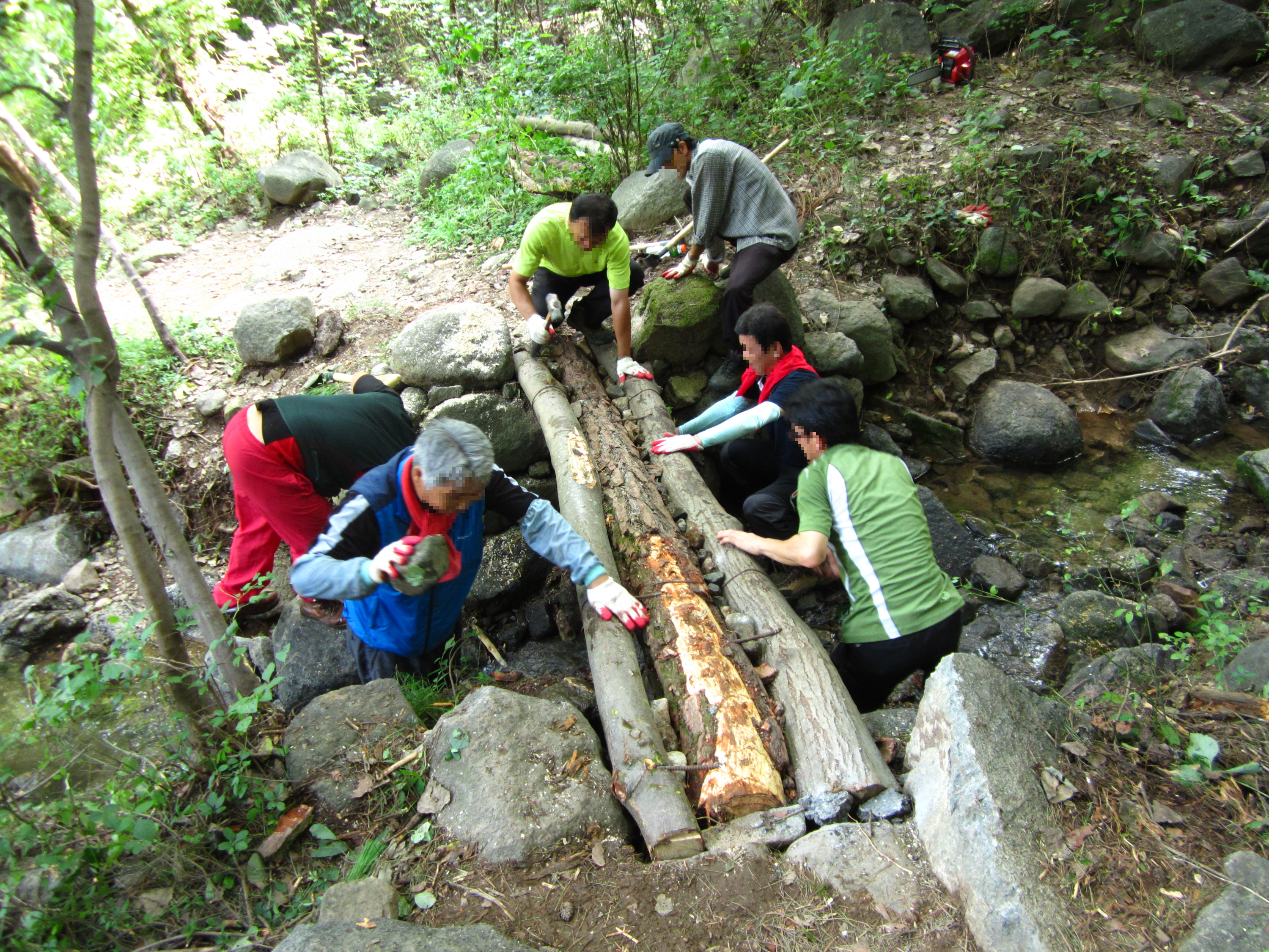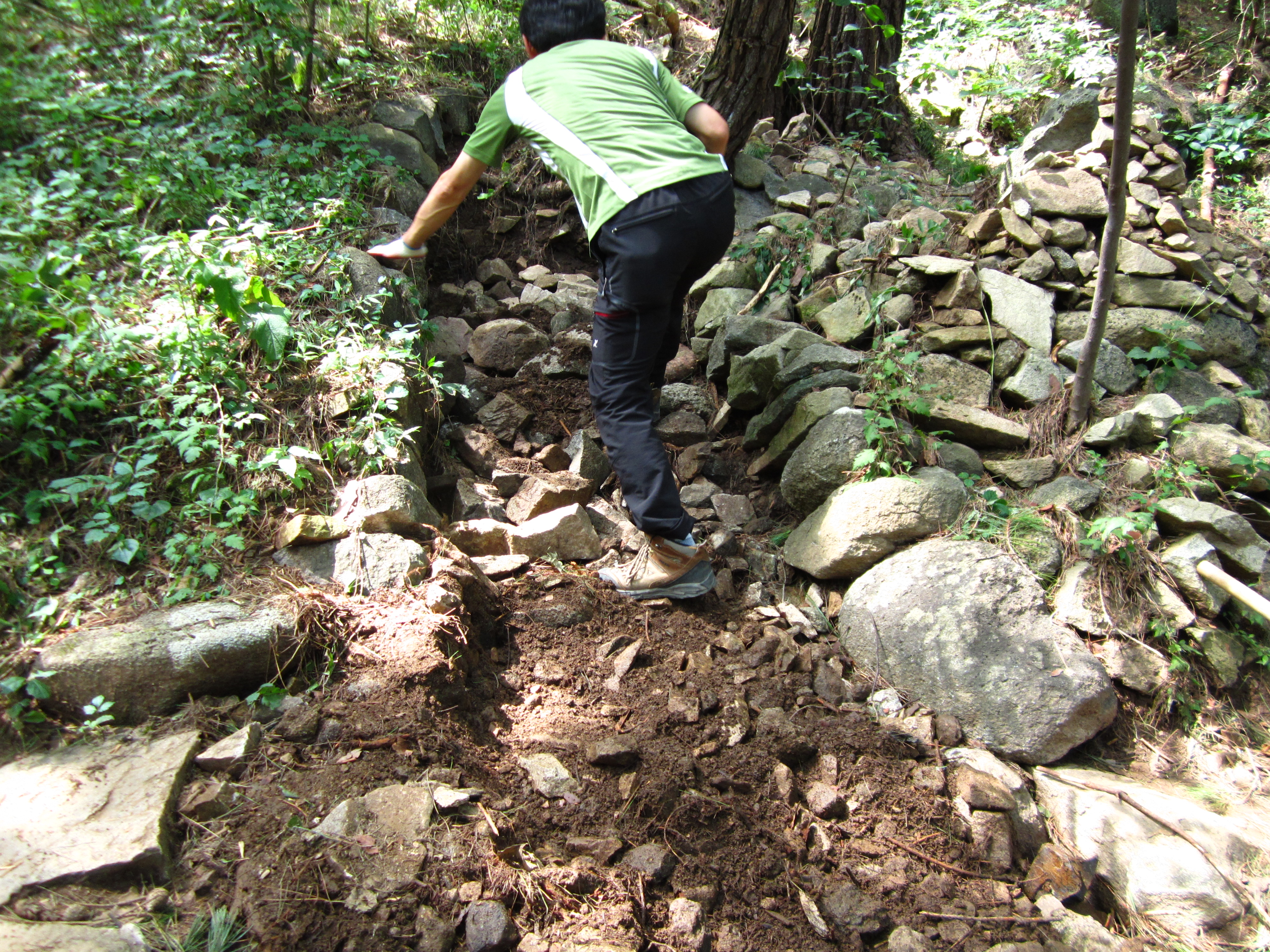 2년간 지리산국립공원 등산로 정비 경력이 있었던 터라 무경험자 분들을 데리고 작업지시를 하며 정비를 함. 이렇게 등산로 정비를 위해 5일간 많은 인원이 투입되어 마무리를 짓게 됨.